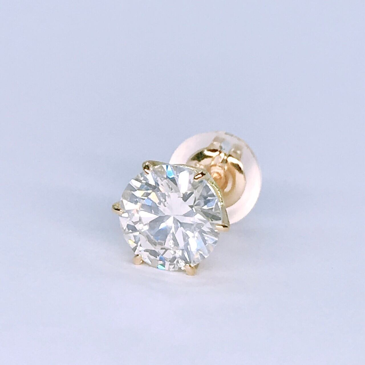 テリの良い1ctアップの大粒ダイヤモンドを6本爪の枠でセッティングしたシンプルなデザインの1粒ピアスです。男性、女性問わずお使い頂けます。